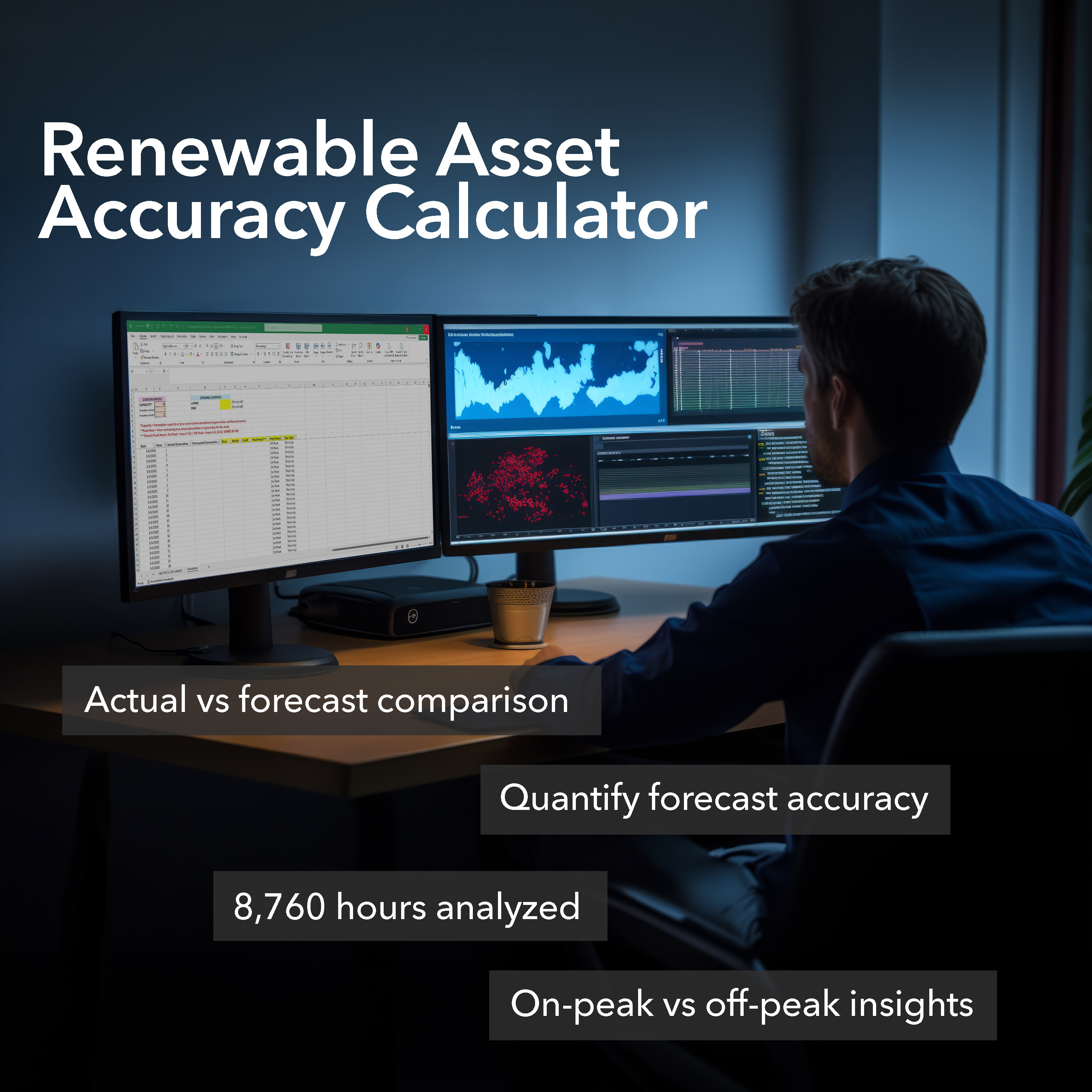 Simply paste your forecasts and actual generation from the last year into this Excel template, add in your metadata, and see your overall and peak-hour accuracy statistics.
