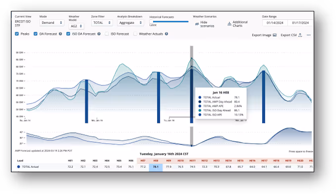 Most times of day, most places on the grid, Amperon offers the most accurate energy demand forecasts. We do especially well during extreme weather events. Below we highlighted an event for each U.S. ISO that showcases just that.