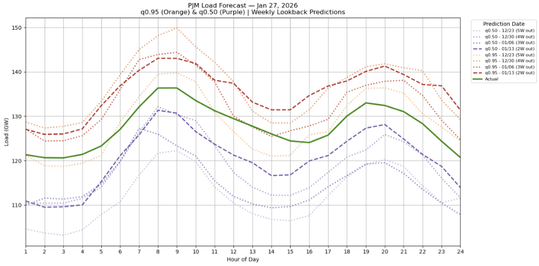 Demand peaked on the morning of January 26 at 75.6 GW after a week of cold weather, but Amperon’s MTF was tracking it the whole way.