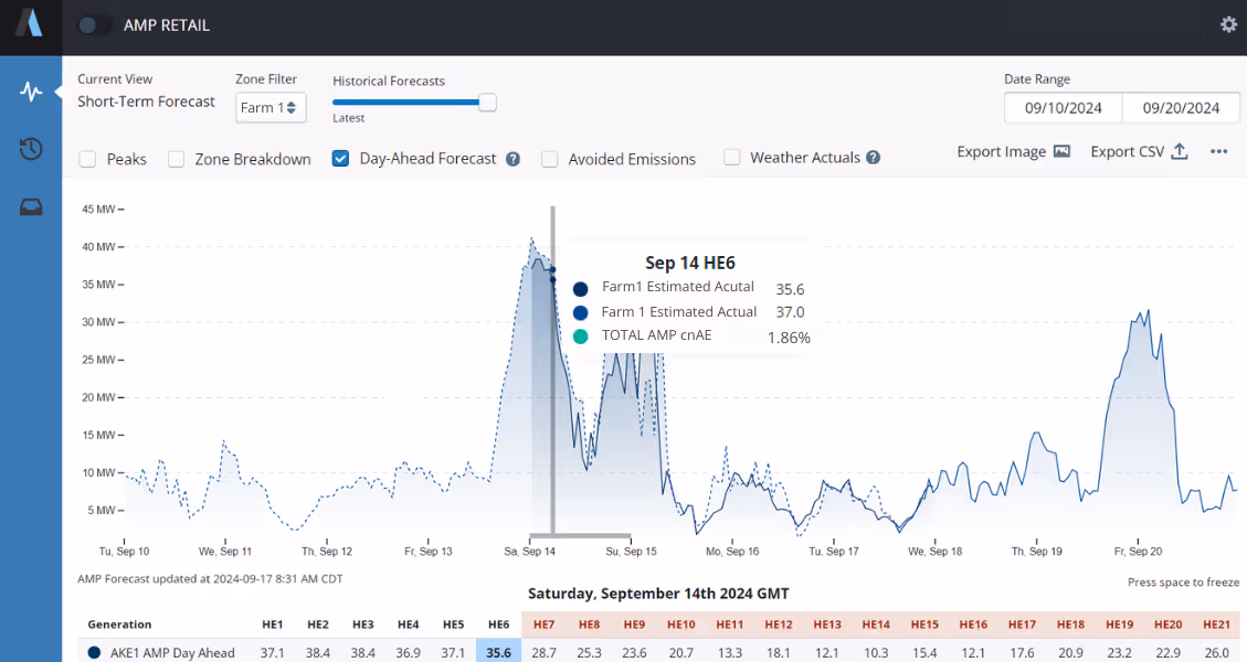 At Amperon, we strive to improve grid reliability, optimize asset economics, and accelerate decarbonization. Since our inception, we have modernized grid data and introduced cutting-edge AI methodologies to tackle the electricity grid’s biggest forecasting challenges: demand and renewable generation. In February 2024, we took a major step forward by launching our first asset-level solar forecasting products as we now offer both hourly and sub-hourly solar generation forecasts.