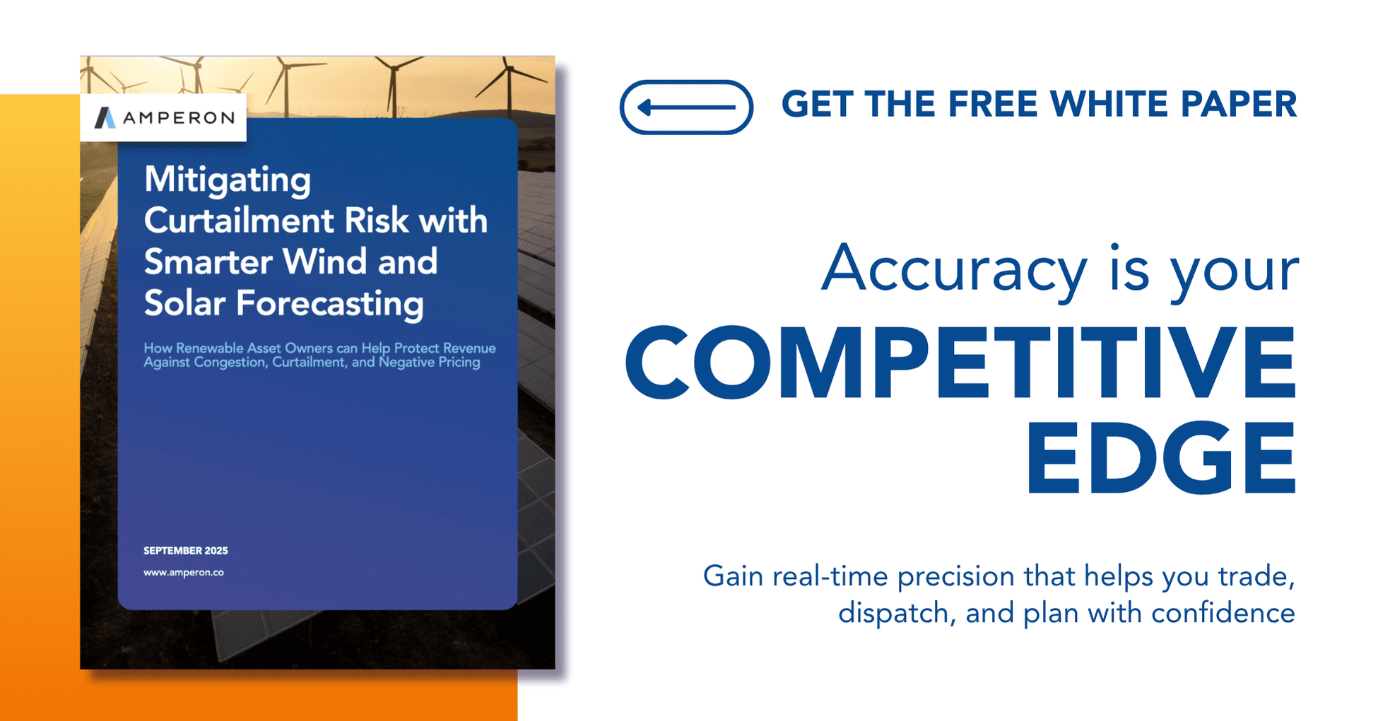 Amperon’s Sub-Hourly and Short-Term solar and wind generation forecasts incorporate curtailment risk, asset-specific metadata, and localized weather inputs. Our hybrid forecasting approach blends physics-based and machine learning models to deliver: